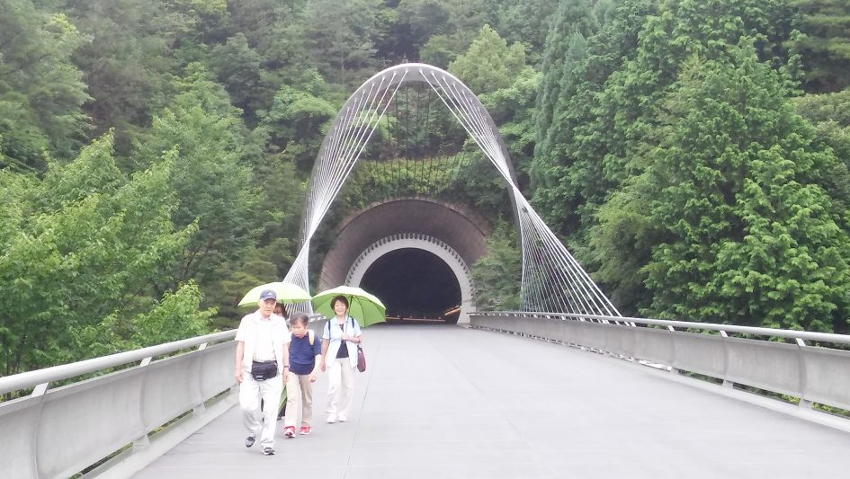 El museo Miho no esta en Kyoto. Esta al lado de Shigaraki, el pueblo curioso donde se compran los tanukis. El Museo esta construido en el monte y es una obra del famoso arquitecto Li Pei, quien conocemos en Francia por su Pirámide del Louvre. Esta vez, la obra intenta amoldarse en un paisaje excepcional. Y la verdad es que lo consiguió.